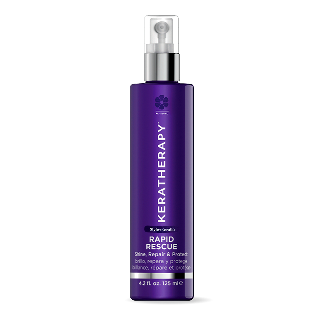 KERATHERAPY'S Rapid Rescue transform hair instantly! A keratin-infused repair spray, this formula works quickly to mend split ends, prevent moisture loss and repair damage brought on by chemical services and environmental elements all while helping protect against color fading. The results are shiny, smoother, more manageable, styled, healthy hair.